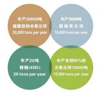 項(xiàng)目年生產(chǎn)300天,每天24小時(shí)連續(xù)運(yùn)行,建成投產(chǎn)并達(dá)產(chǎn)時(shí),具備以下生產(chǎn)能力:①、年產(chǎn)20000噸植膜型納米氧化鋅;②、年產(chǎn)10000噸煅燒氧化鋅;③、年產(chǎn)20噸精銦(4N5);④、年產(chǎn)含鋅65%的次氧化鋅10000噸。